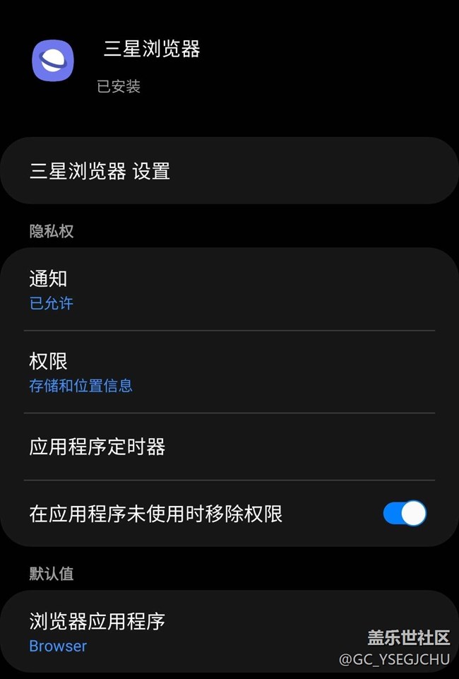 升級(jí)后,我也未做另外的設(shè)置,上述情景下,網(wǎng)頁(yè)瀏覽器都默認(rèn)以三星瀏覽器打開(kāi)。如果在下圖默認(rèn)值的地方改別的瀏覽器,那么打開(kāi)網(wǎng)頁(yè)鏈接就只喚起默認(rèn)那個(gè)瀏覽器打開(kāi)鏈接。