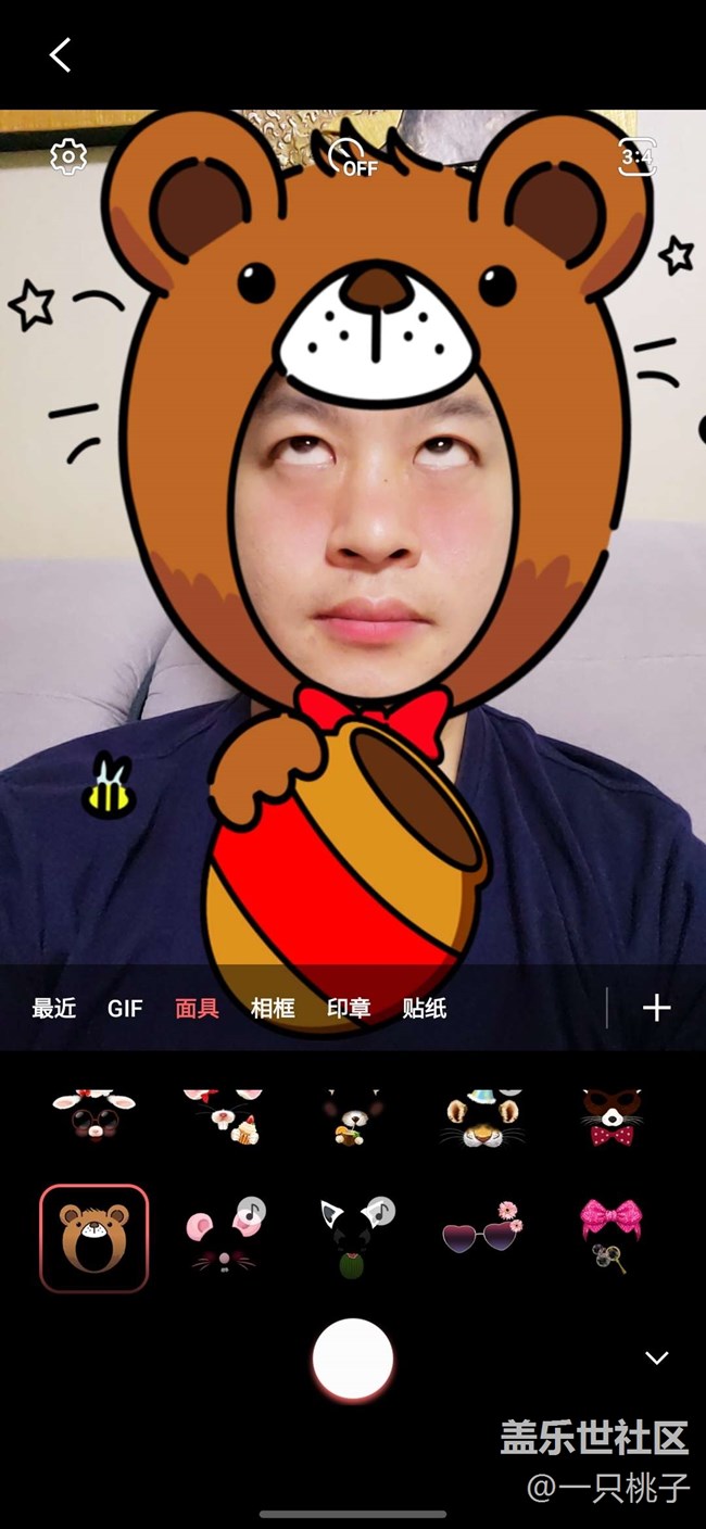 這個(gè)功能集合了所有市面上的第三方趣味性App的功能,可以將自己帶上面具變臉小兔子小貓貓,還可以加相框,還有水印相機(jī)的等功能。