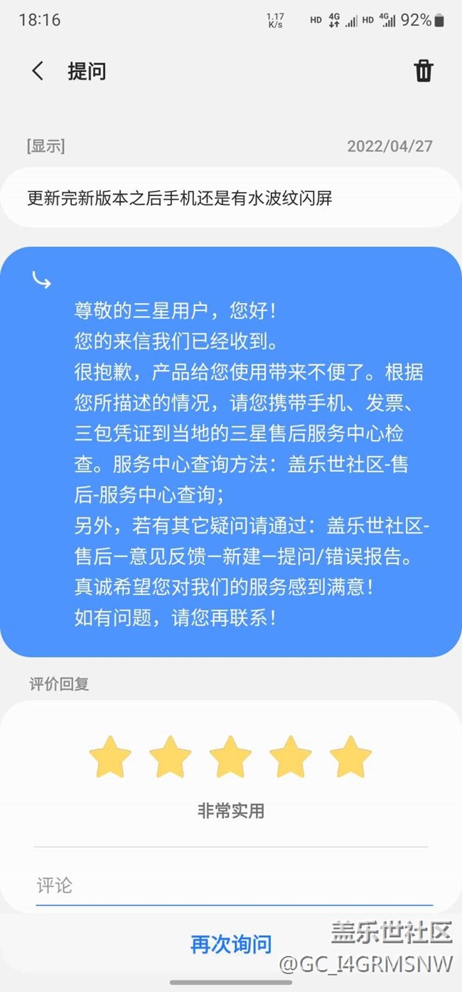三星售后(關于水波紋閃屏問題) 圖片