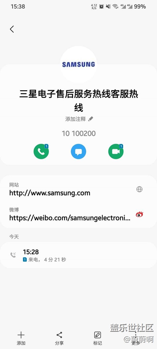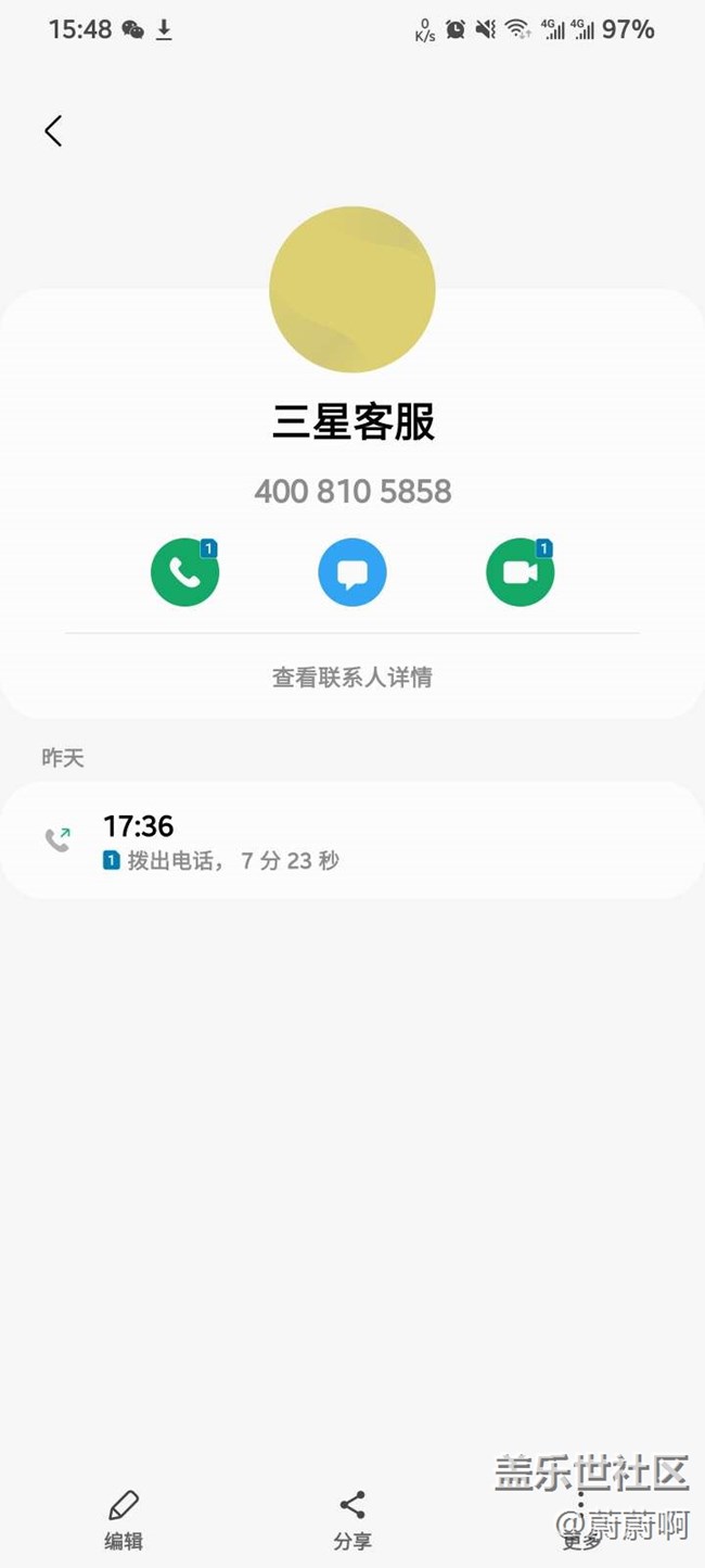 然后昨天嘗試給三星售后打過(guò)電話。他們告訴我的結(jié)果是沒(méi)有辦法花錢去售后維修,嗯,不會(huì)去管,如果說(shuō)你想再反饋的話,他可以幫你反饋。