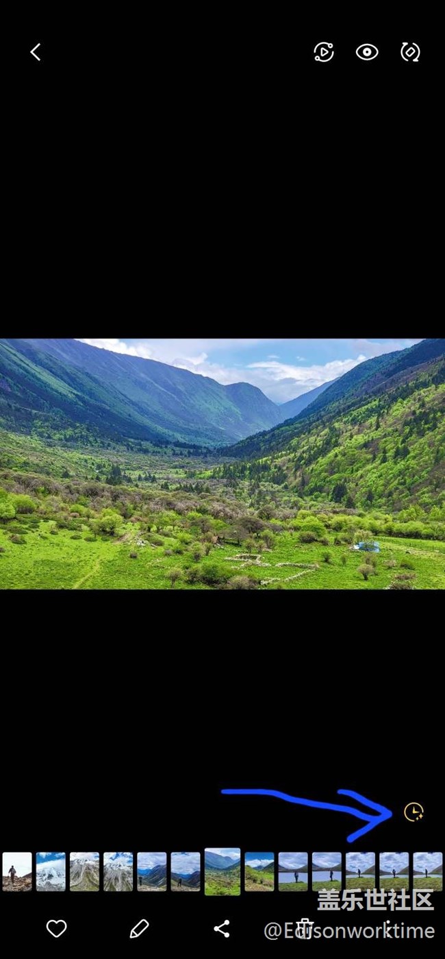 起初猜測是因?yàn)橛性频木壒?,這個功能會自動識別,但是自己相冊里面同樣有云朵的照片卻沒有出現(xiàn)可操作的按鈕。