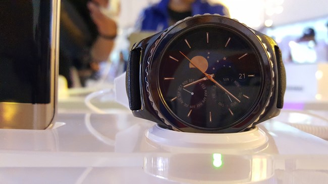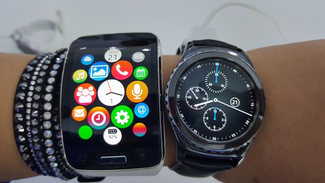 第四:大家最喜歡Gear S2的是它的可旋轉(zhuǎn)表盤,而Gear S沒有,而是方方正正。