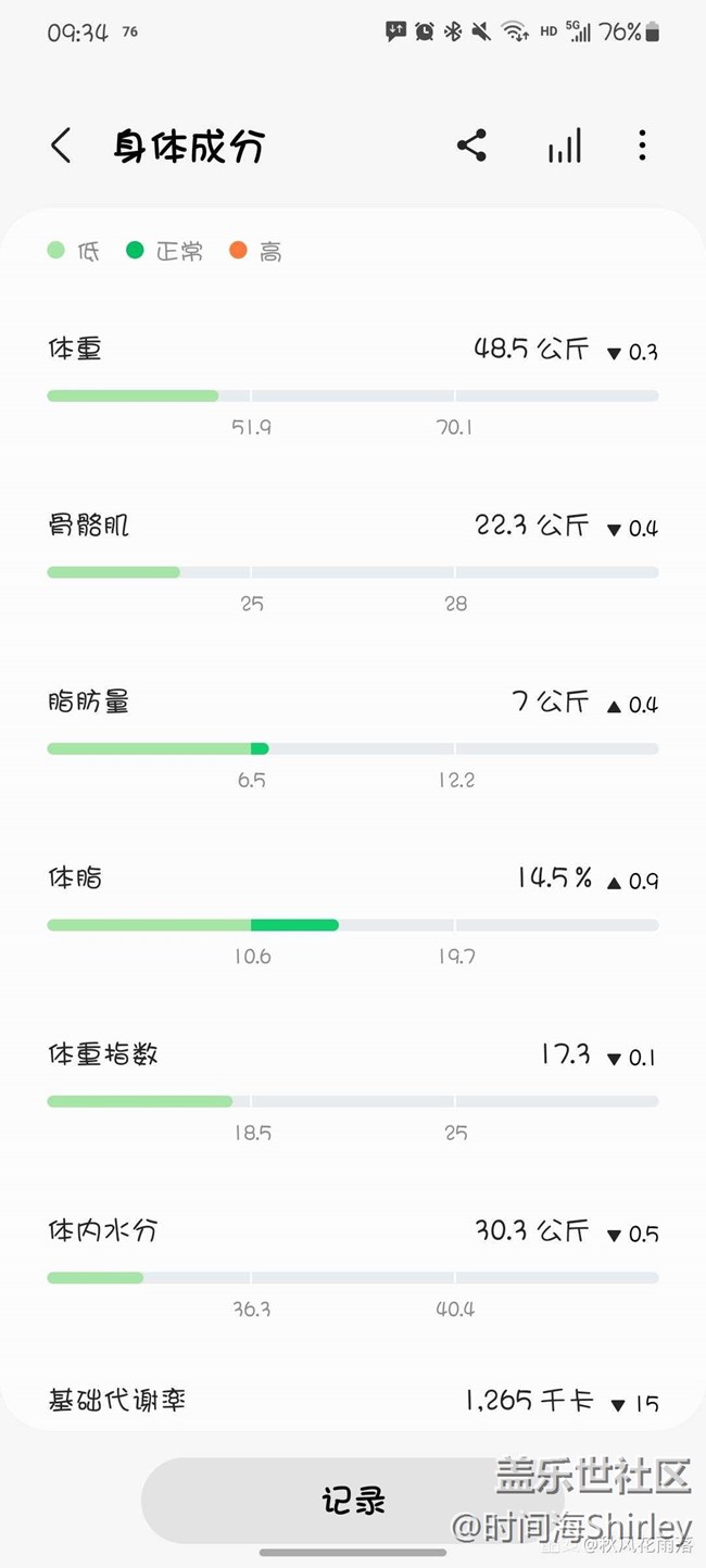 Watch4還支持廣受好評的身體成分檢測。只要把手指放在按鍵上15s,就可以獲得一份身體成分報告,還會給出與上次測量的變化。也算是行內(nèi)首發(fā)了。其他數(shù)據(jù)我不是特別關(guān)注,但是隨時隨地測量體脂率還是很方便的。數(shù)據(jù)的準(zhǔn)確與否暫且不談,但是我認(rèn)為,這類檢測的重點(diǎn)是趨勢而不是數(shù)字??吹阶兓厔菥鸵炎銐?,沒必要糾結(jié)準(zhǔn)確的數(shù)字到底是多少。