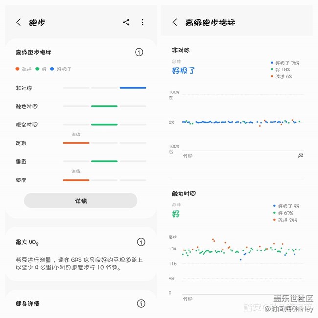 早在2020年,三星就買下了瑞士Myotest公司的跑步算法。Watch4支持跑步時通過先進(jìn)的算法和多個傳感器協(xié)同,得出跑者的步幅,觸地硬度,甚至觸地時間,左右腳對稱性等平常幾乎不可獲得的數(shù)據(jù),并且在運(yùn)動后針對這些數(shù)據(jù)給予你提示和建議。本人認(rèn)為已經(jīng)做的足夠好。