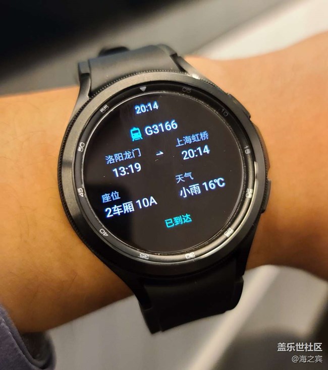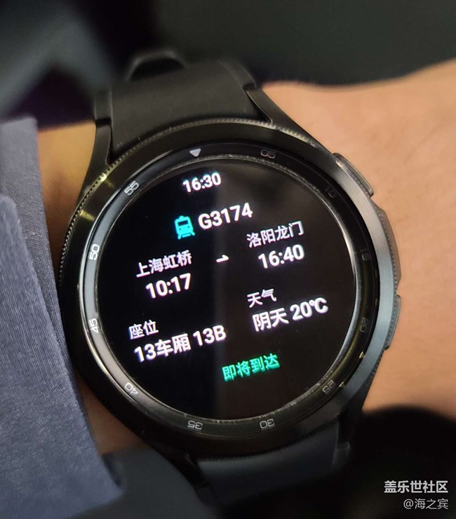 手表鏈接到APP三星生活,可以從12306獲取出行車票信息,在手表上顯示出行信息提醒旅行時(shí)的提醒