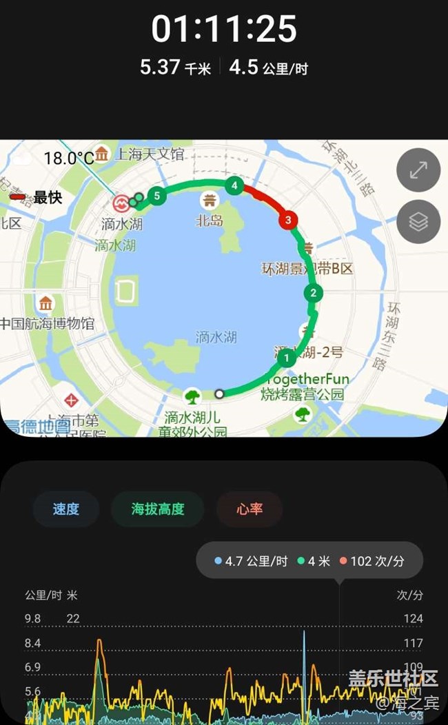 湖邊散步的時(shí)候,一邊聽音樂,一邊記錄運(yùn)動(dòng)過程