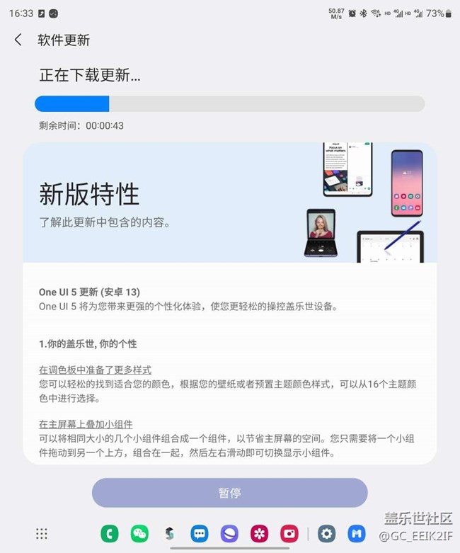 正式版應(yīng)該快了,就目前兩天的使用來說,5.0更多是細節(jié)的優(yōu)化,使用體驗并沒有質(zhì)的改變,發(fā)熱續(xù)航這些跟4.0一致。最重要的還是希望三星可以做更多的折疊屏軟件主動適配,這樣才能體現(xiàn)折疊的優(yōu)勢。