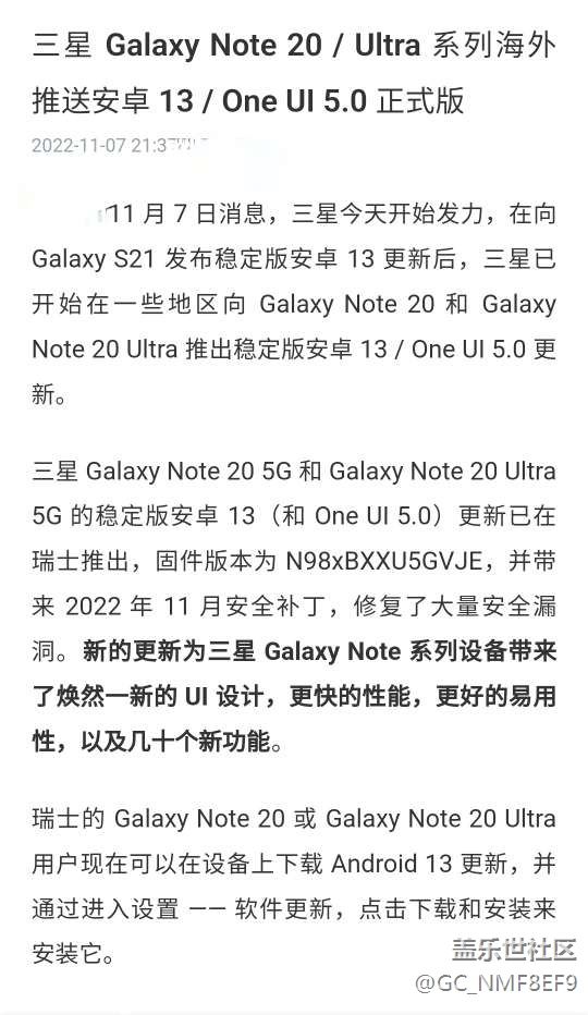 國外蓋樂世20系列已經(jīng)更新UI 5.0