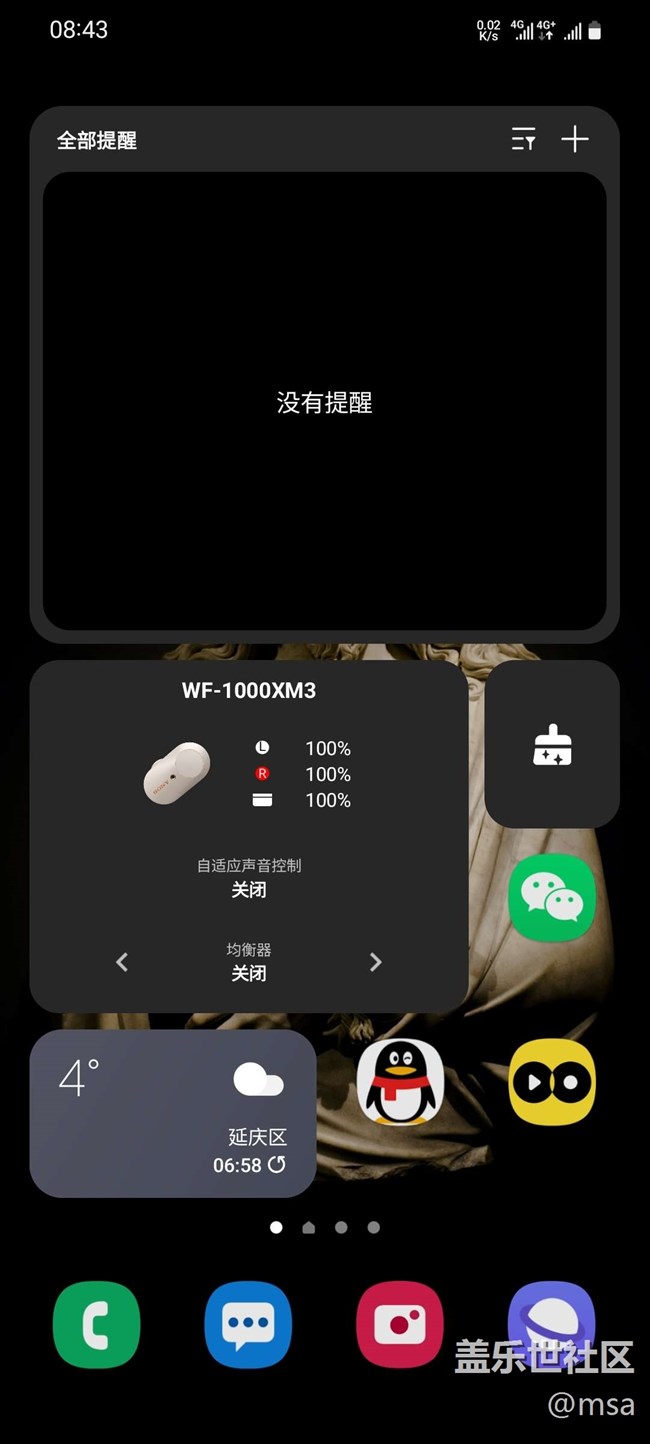 之后推薦diy一個負一屏,三星的bixby主頁布局并不適合單手操作,因為和快捷面板一樣,工具欄都在屏幕上半部分,以至于每次使用工具都需要雙手操作。建議將常用的小組件組裝在一起,需要手動操作的小組件放在下半部分,這樣就不需要太大幅度的動作就可以完成操作,并且這樣的負一屏不會有bixby主頁那么大的割裂感。