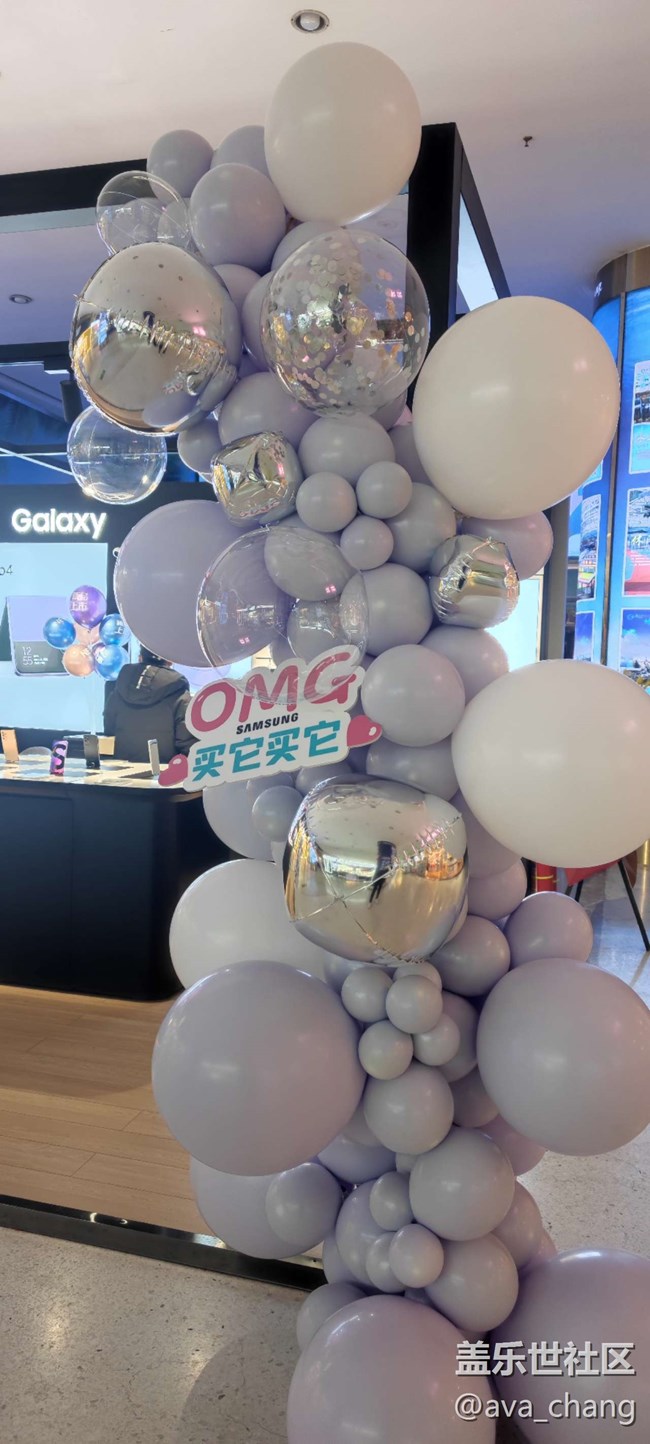 忽然發(fā)現(xiàn),活動(dòng)現(xiàn)場(chǎng)的氣球拱門顏色也是淡紫色,嗯嗯,果然三星的審美在線,現(xiàn)場(chǎng)看的話,還是挺有feel的嘛! ???????