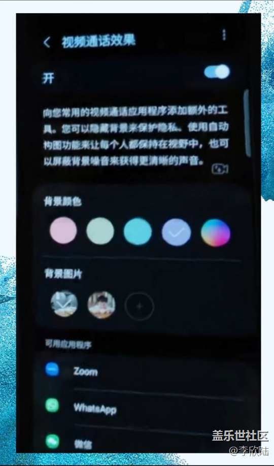 我們Galaxy ZFold4 andZFilp4的用戶會(huì)發(fā)現(xiàn)如上所示的界面 目前已知支持 ①zoom ③whats ③微信