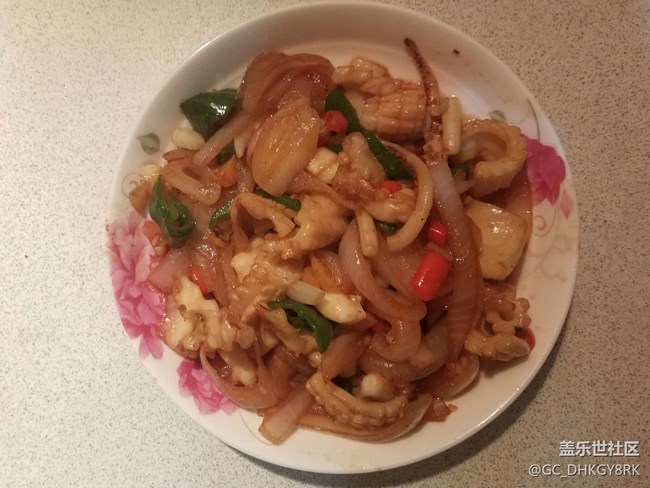 洋蔥炒魷魚。女兒點名要吃,結果扒魷魚片扒了半天。