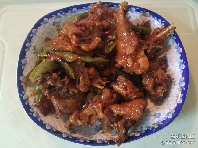 紅燒雞,加入青椒后稍微燒時間長了點,色不好看了。