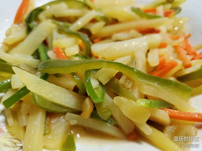 6,炒土豆青椒絲,放點(diǎn)小醋,酸酸的,好吃