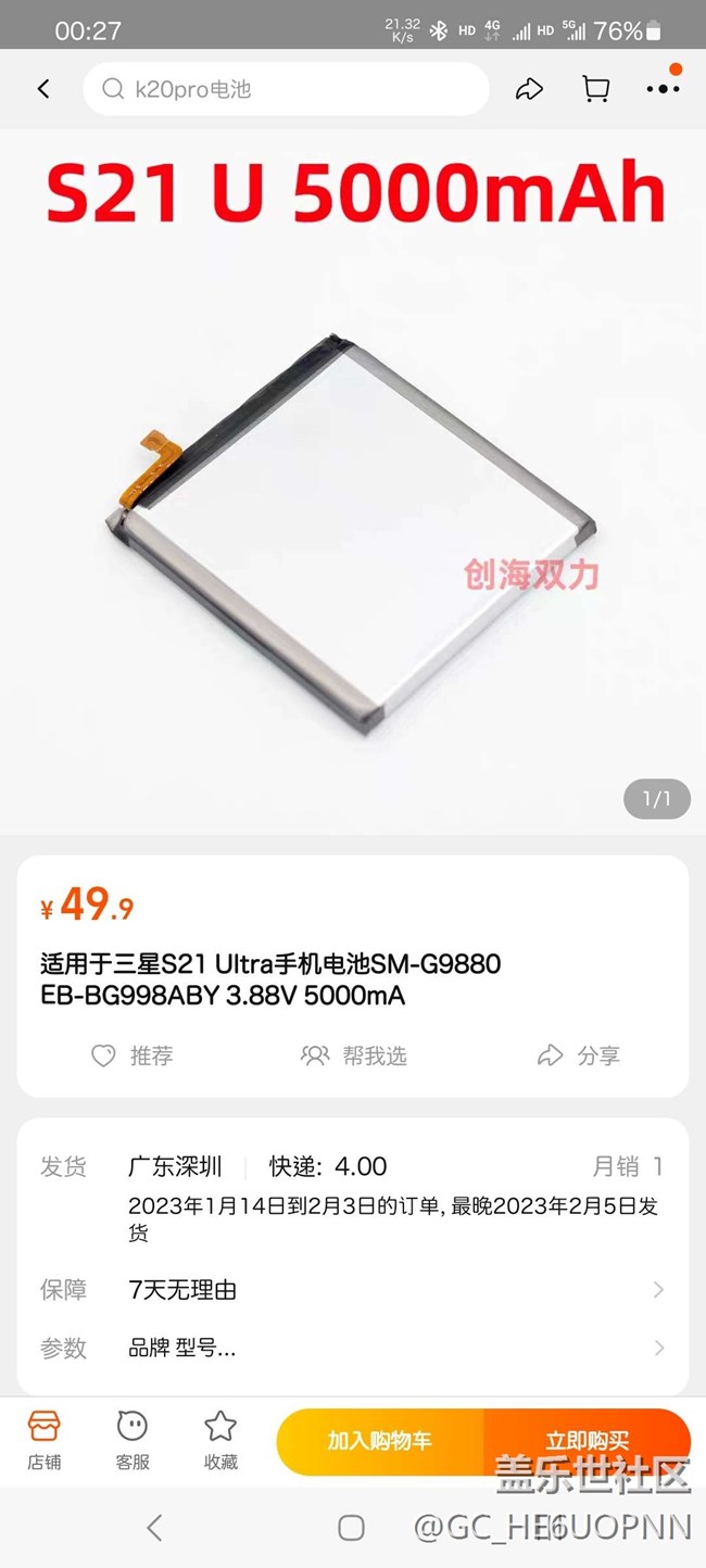 老鐵們,自己換電池,S21+可以用Ultra的電池嗎? 圖片