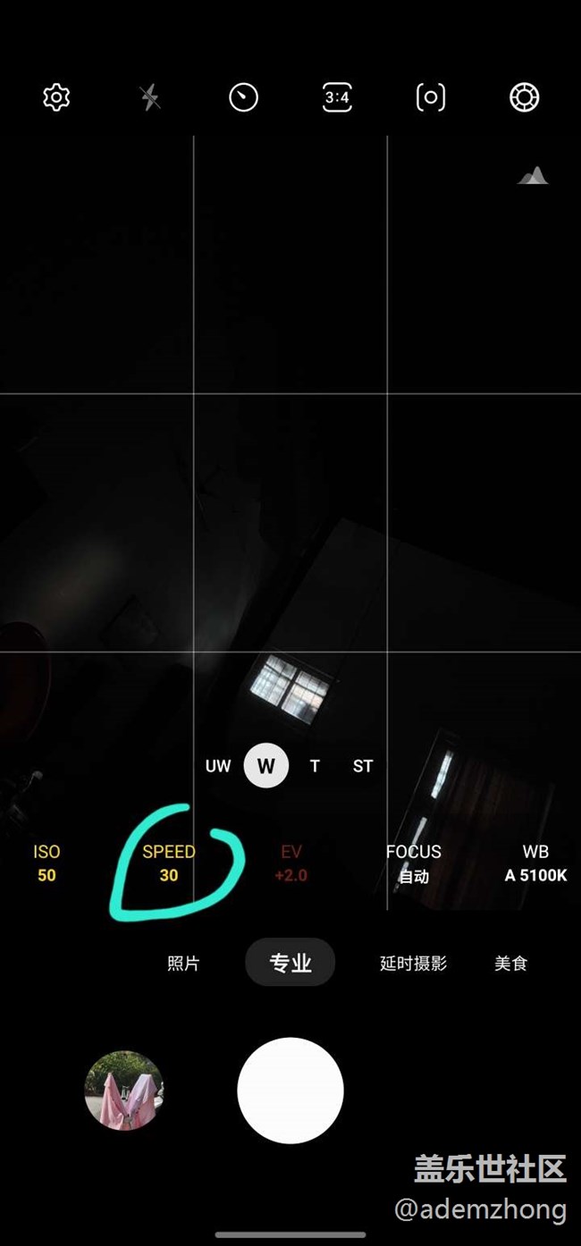 所以只需要手動(dòng)設(shè)置足夠的曝光時(shí)長(zhǎng)即可,進(jìn)入手機(jī)的專業(yè)模式即可