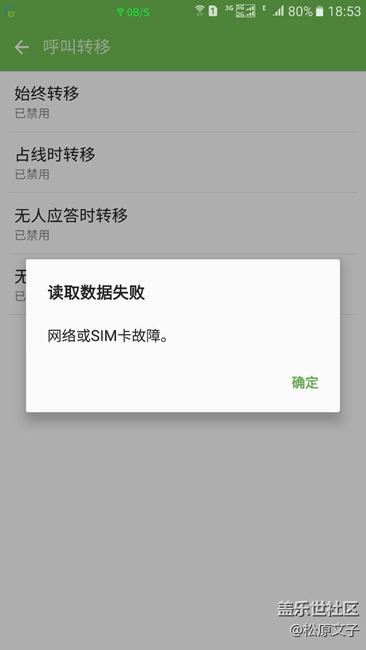 ?昨天設(shè)置卡2移動(dòng)呼叫轉(zhuǎn)移,出現(xiàn)下圖提示,SIM卡或網(wǎng)絡(luò)故障,不知道什么原因,有知道的朋友嗎?