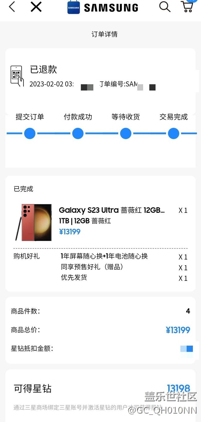 退款已完成 三星對不起我凌辰三點(diǎn)下單的粉絲情懷。