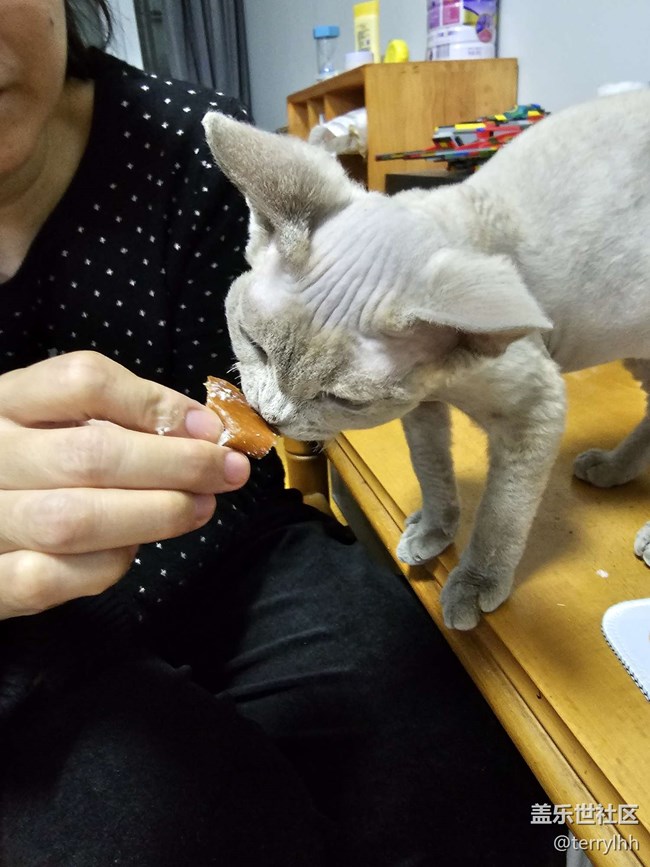 還有另外一個特點,特別能吃,是一個小吃貨。什么貓零食貓罐頭,都吃很多。每天兩餐,如果不控制,一餐能吃上大概是普通成年人飯碗大小的一份肉,還會繼續(xù)吃。平常家人吃的面包,魚,雞肉等都喜歡吃,一直問你拿吃,永遠吃不飽的樣子。
