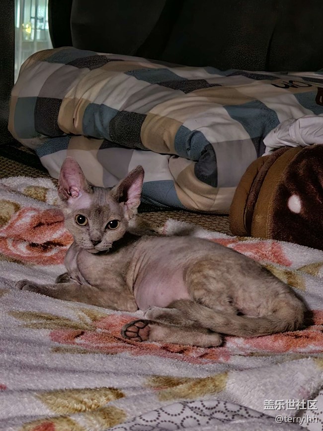 德文貓是丁香色的,身體小小一只,大大的耳朵,與家里人熟悉后特別粘人,晚上喜歡睡到你的腳邊,不喜歡睡貓窩。并且喜歡好動,在沒有陌生人情況下,平常是停不下來的。