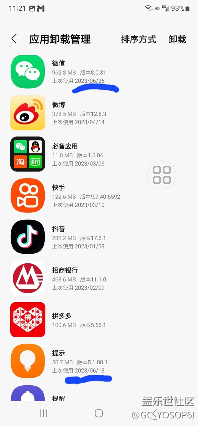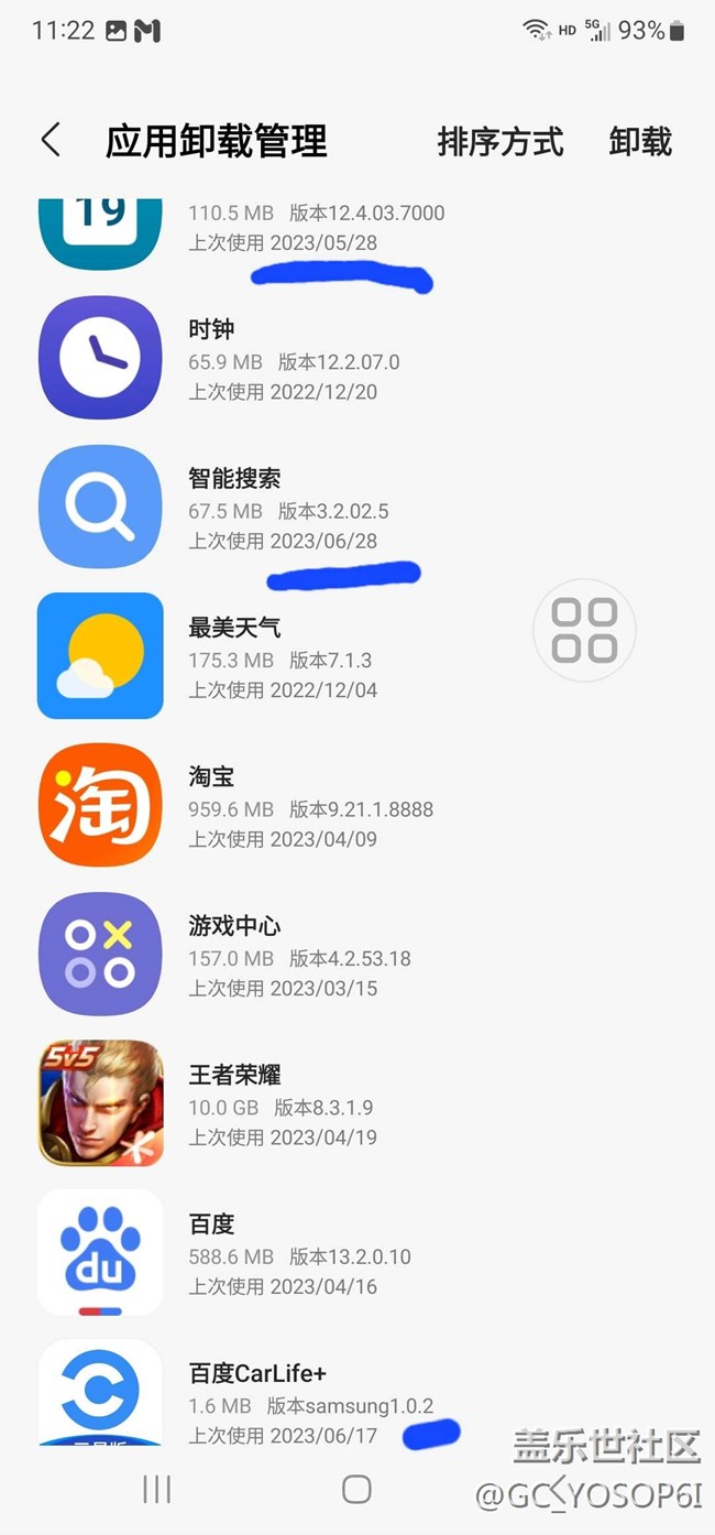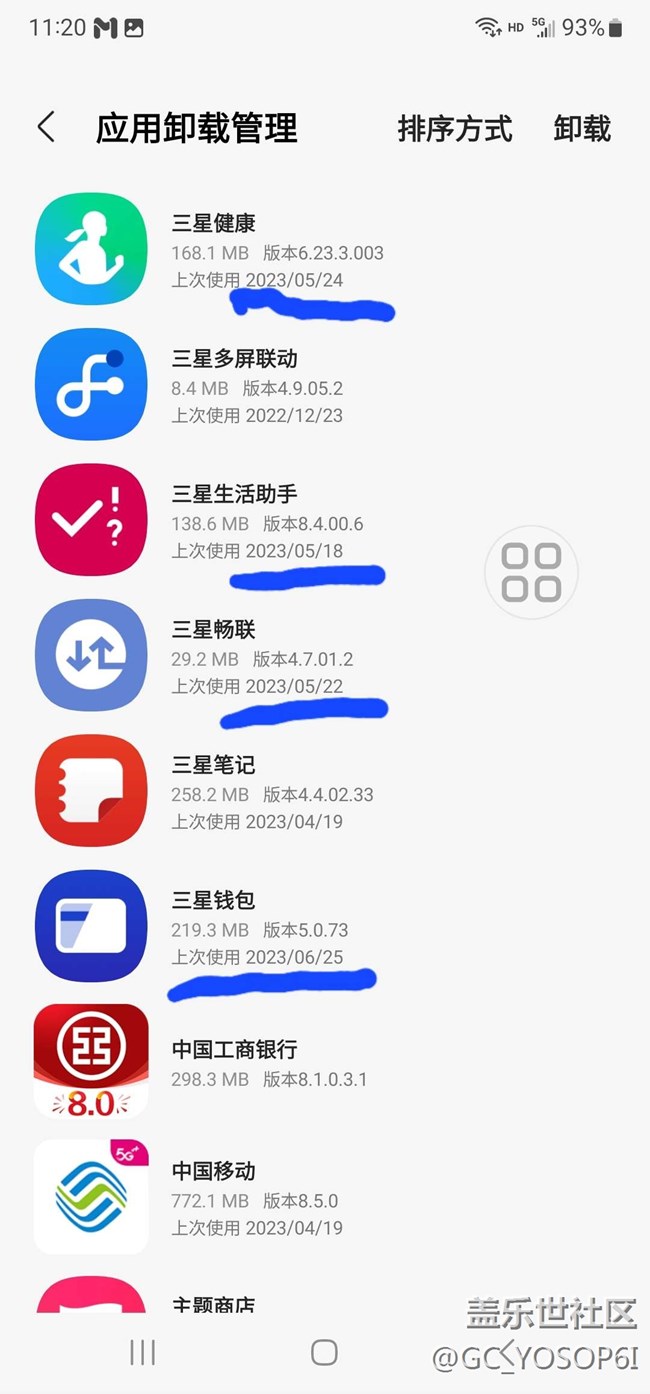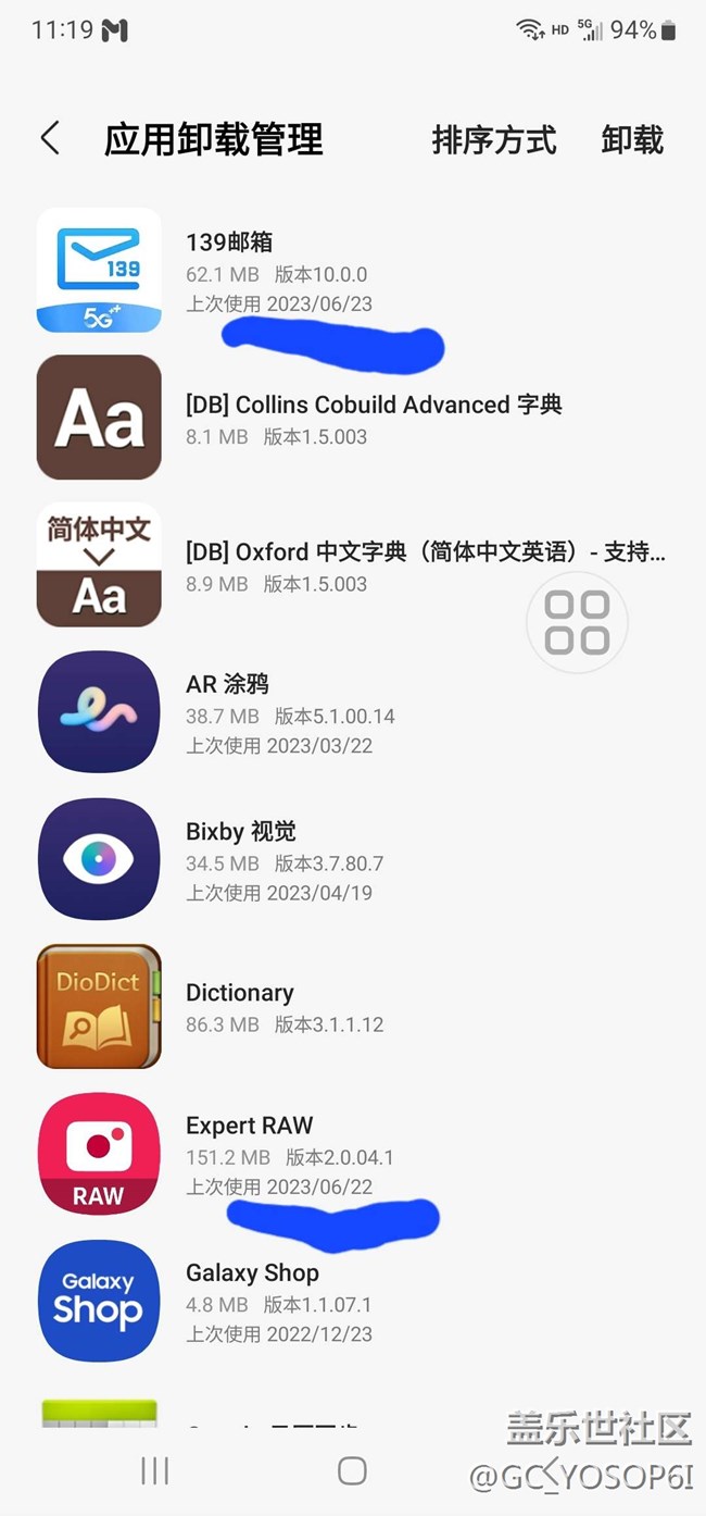 在三星應(yīng)用商店內(nèi)應(yīng)用卸載管理中顯示的時間錯誤,今天時間2023/04/19