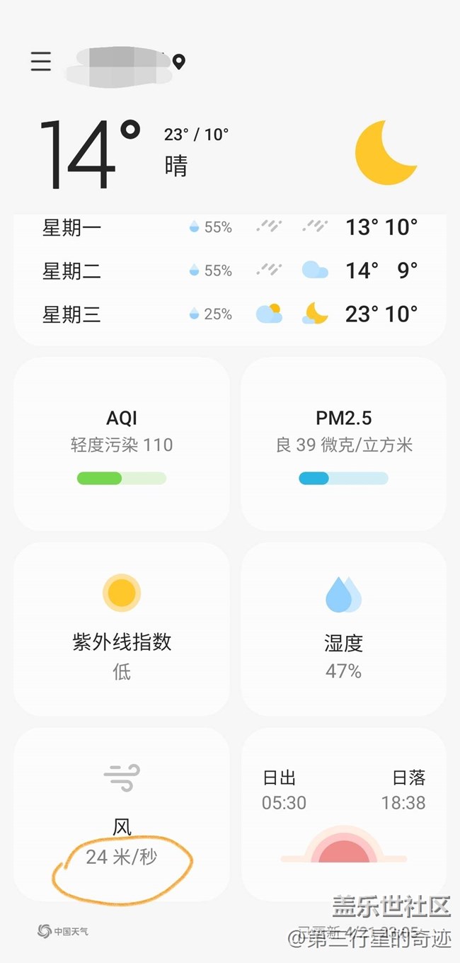 今天風(fēng)很小,好奇看了手表上的天氣,顯示風(fēng)速24米每秒。我想不應(yīng)該啊,那不得有9~10級了?手機端天氣也這么顯示,點開一看,氣象來源顯示的是24公里每小時。