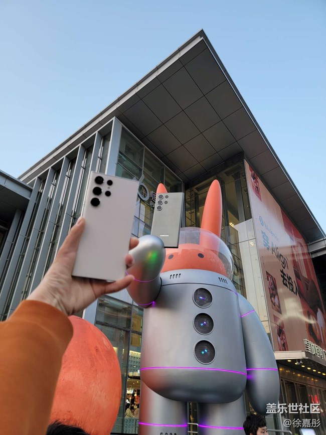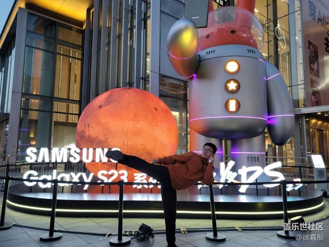 然后我又拍了幾張創(chuàng)意的照片,首先當(dāng)天正好天晴可以看見月亮,用s23ultra的潛望鏡頭拍攝了手機(jī)模型和月亮的合照