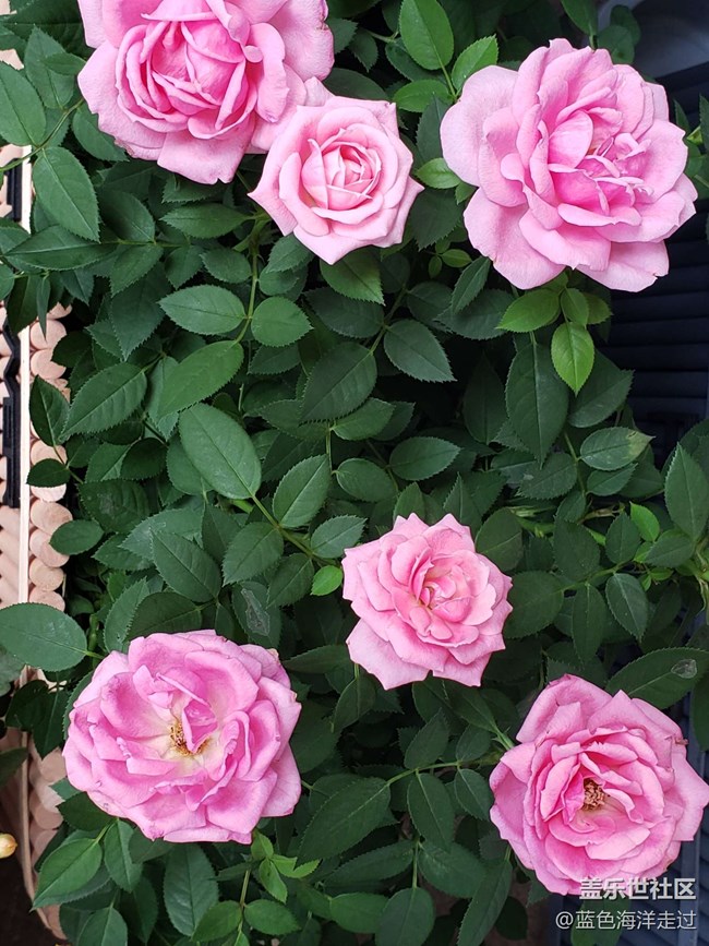 這種深綠但又厚大的葉子和粉色的花形成了返差