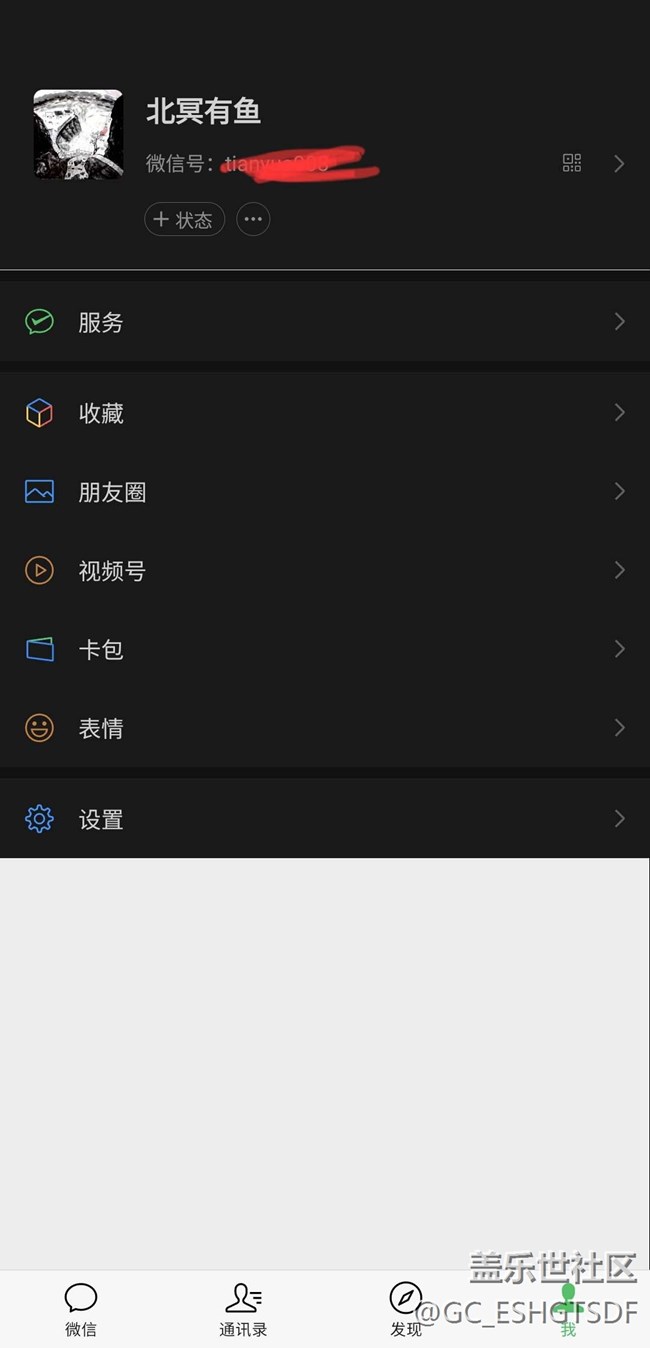 我手機都是設置的黑暗模式。但是qq和微信卻設置的淺色模式不跟隨系統在黑暗模式下,有時候進入微信就會像圖片中一樣。解決方法就是下拉通知欄關閉黑暗模式再開啟黑暗模式就正常了。這個bug幾率基本隔三差五出現。