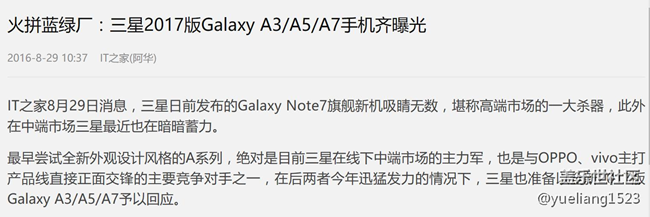 2017版三星A3 A5 A7曝光 圖片