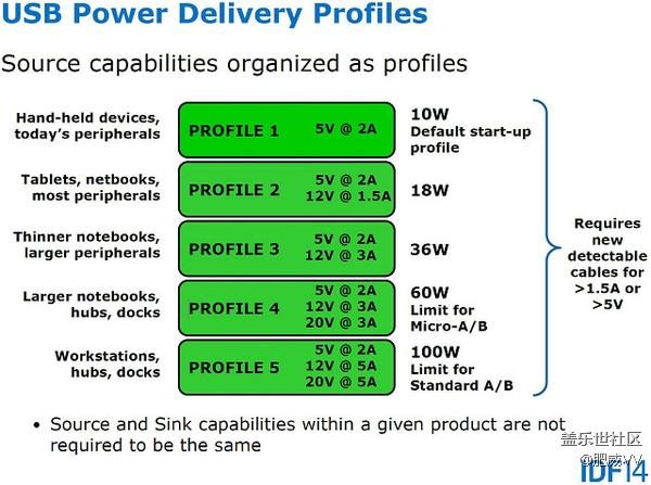說完USB3.1,我們說說PD充電,USB PD(USB Power Delivery Specification)充電標準是USB-IF在2014年公開的一種Type-C接口的充電標準,最高可以達到20V 5A共100W的恐怖功率,當然對于便攜設備來說“只”能到12V 3A最高36W的功率。