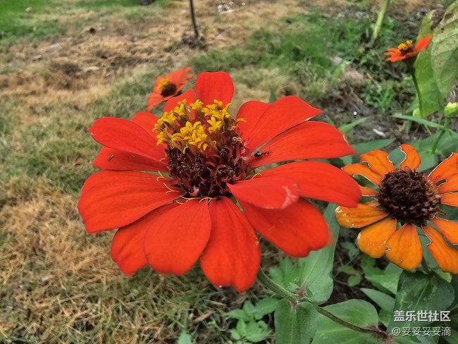 花壇里面到處都是這種花,百度了一下,好像叫百日菊,這花真好看。