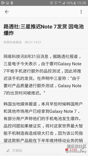 官方證實(shí):三星Note7因需進(jìn)一步質(zhì)量檢測延期出貨 圖片