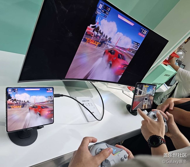 體驗(yàn)了Z Fold5、Flip5折疊手機(jī)和超大的Tab S9 Ultra平板和玄龍騎士G85顯示器,那個(gè)體驗(yàn)賽車游戲的藍(lán)牙手柄延遲低,超贊的