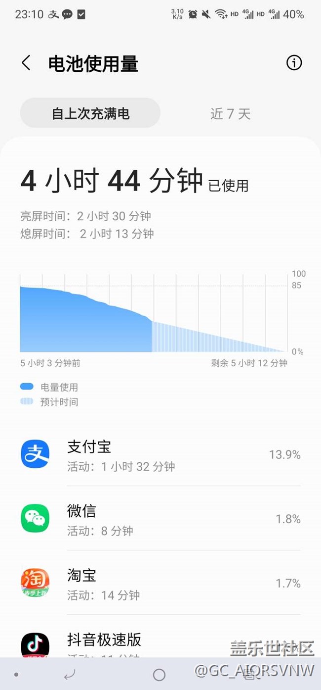 電量85-40=45%,亮屏兩個(gè)半小時(shí) 圖片