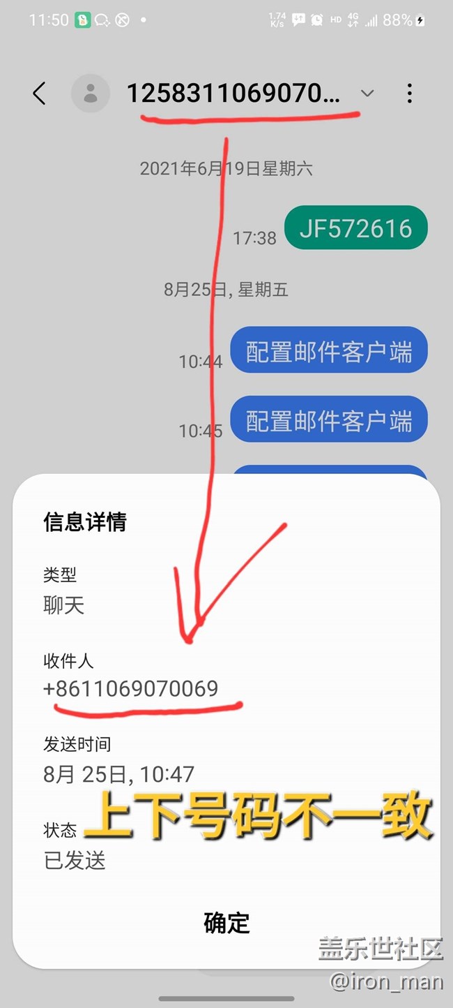 我普通的主號是能正常發(fā)短信的。 用這個副號發(fā)短信時,根據(jù)要求需要在接收方號碼前加了125831,但是發(fā)送后對方無法收到。 而我用其他的手機(jī),比如iPhone,同樣的操作,對方卻是能收到的。 看我截圖,接收方的號碼自動過濾掉了125381的前綴