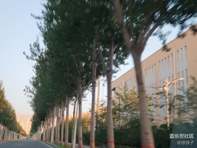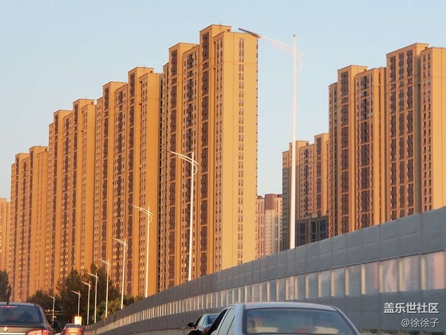 坐車在橋上 夕陽(yáng)打過(guò)來(lái)的光照在樓體上格外有氣氛