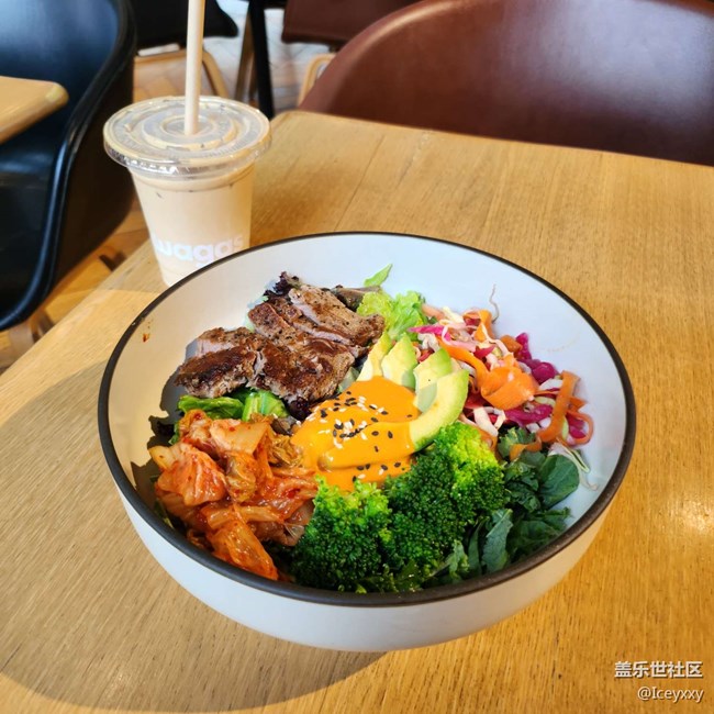這個韓式泡菜的牛肉沙拉好吃!喜歡牛油果~