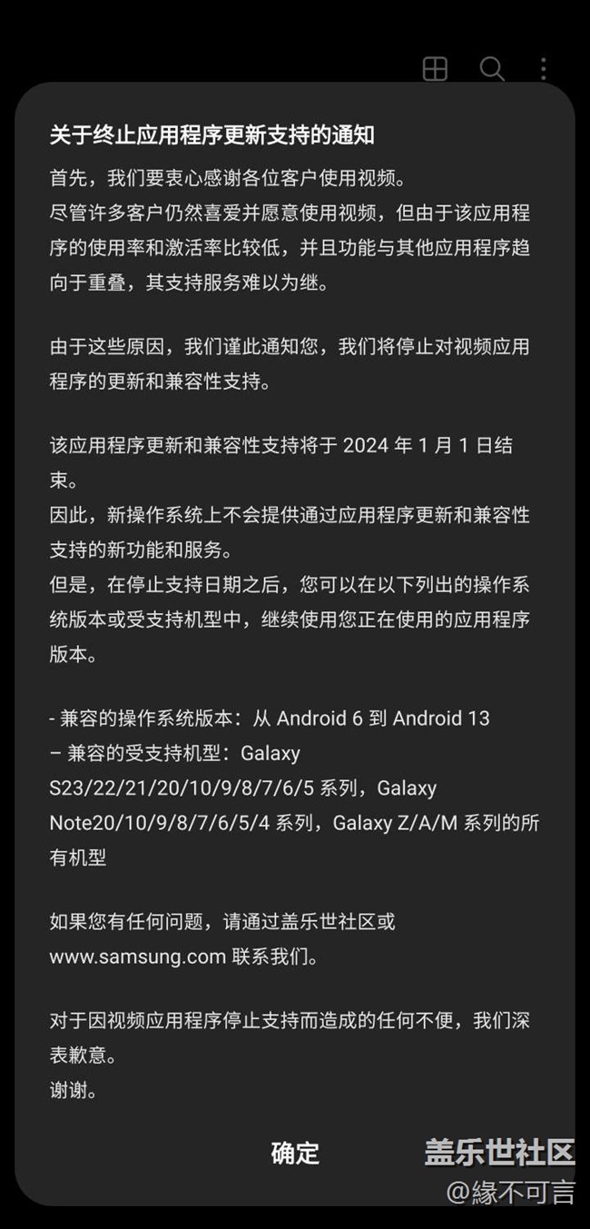 三星視頻停更及兼容性支持 圖片