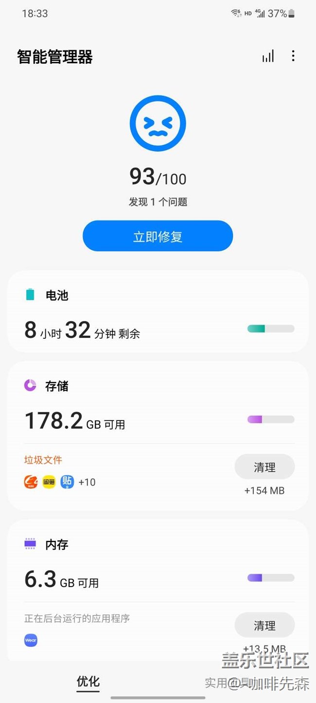 建議官方優(yōu)化系統(tǒng)后臺(tái)無使用情況下把系統(tǒng)APP休眠。
