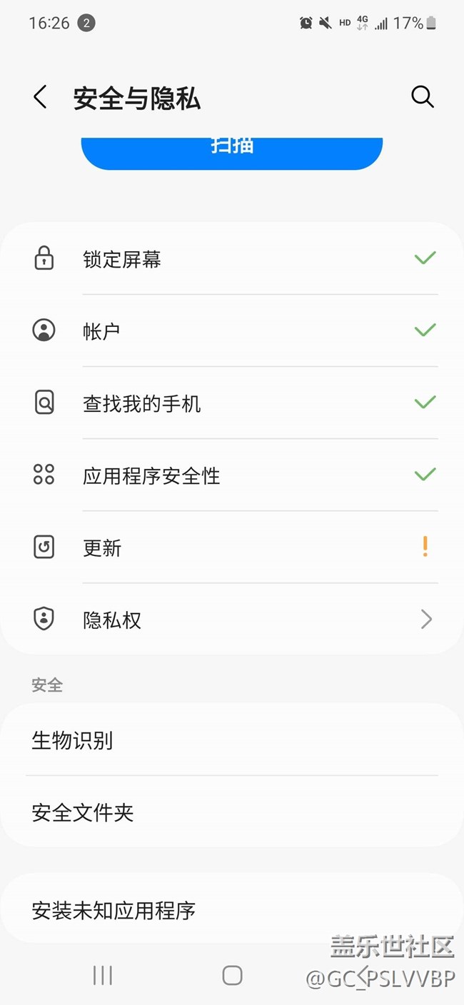 隱私設(shè)置檢查正常,但為什么更新一欄有感嘆號? 圖片