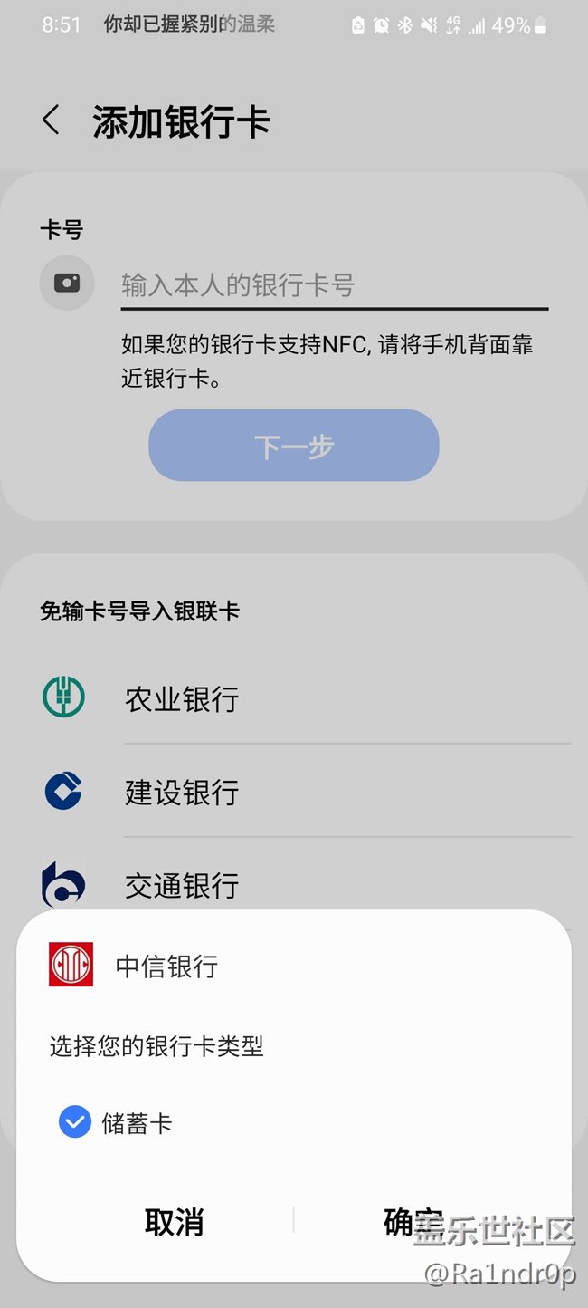 pay 不能添加中信銀行的信用卡,只能添加儲蓄卡