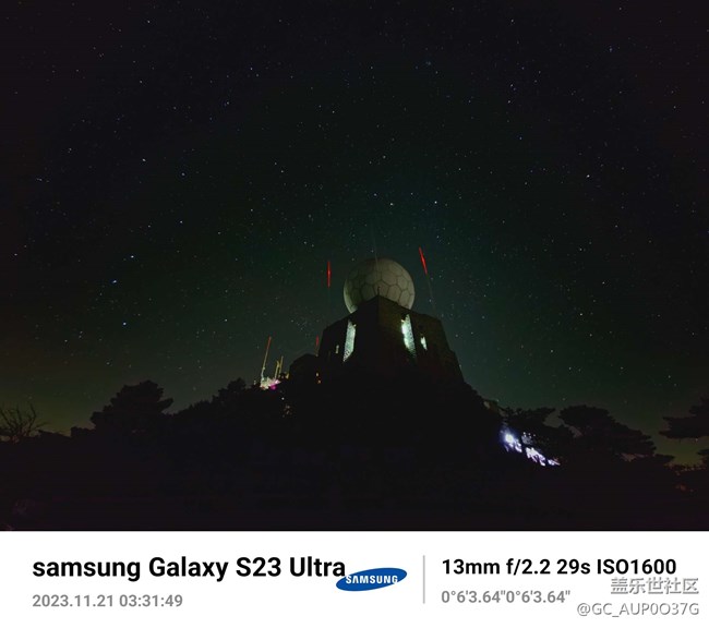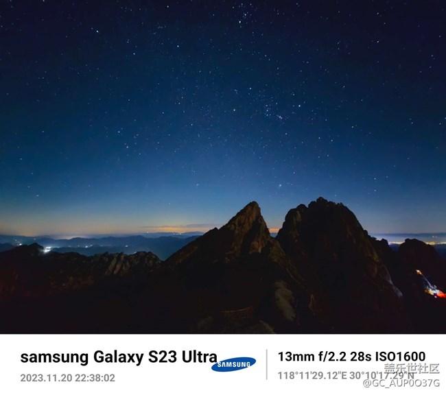 三星星空模式下黃山上拍到了