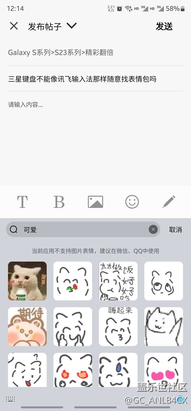 三星鍵盤不能像訊飛輸入法那樣隨意找表情包嗎 圖片