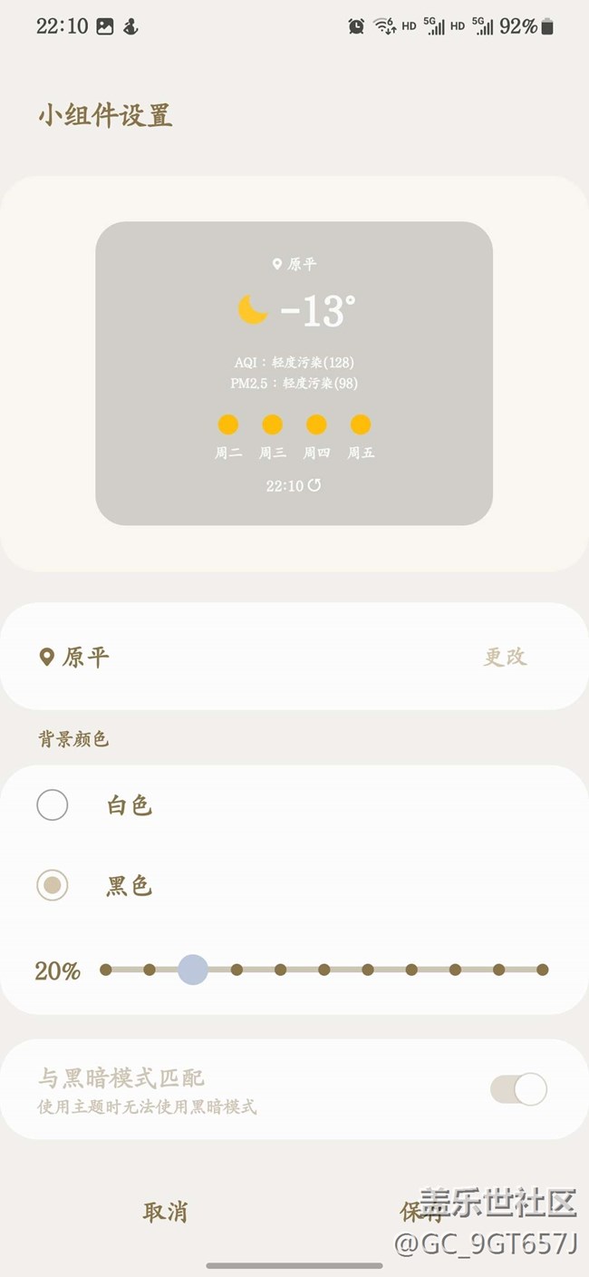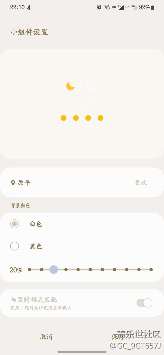 桌面天氣小組件字體一直是白色只能選背景是白色還是黑色 圖片