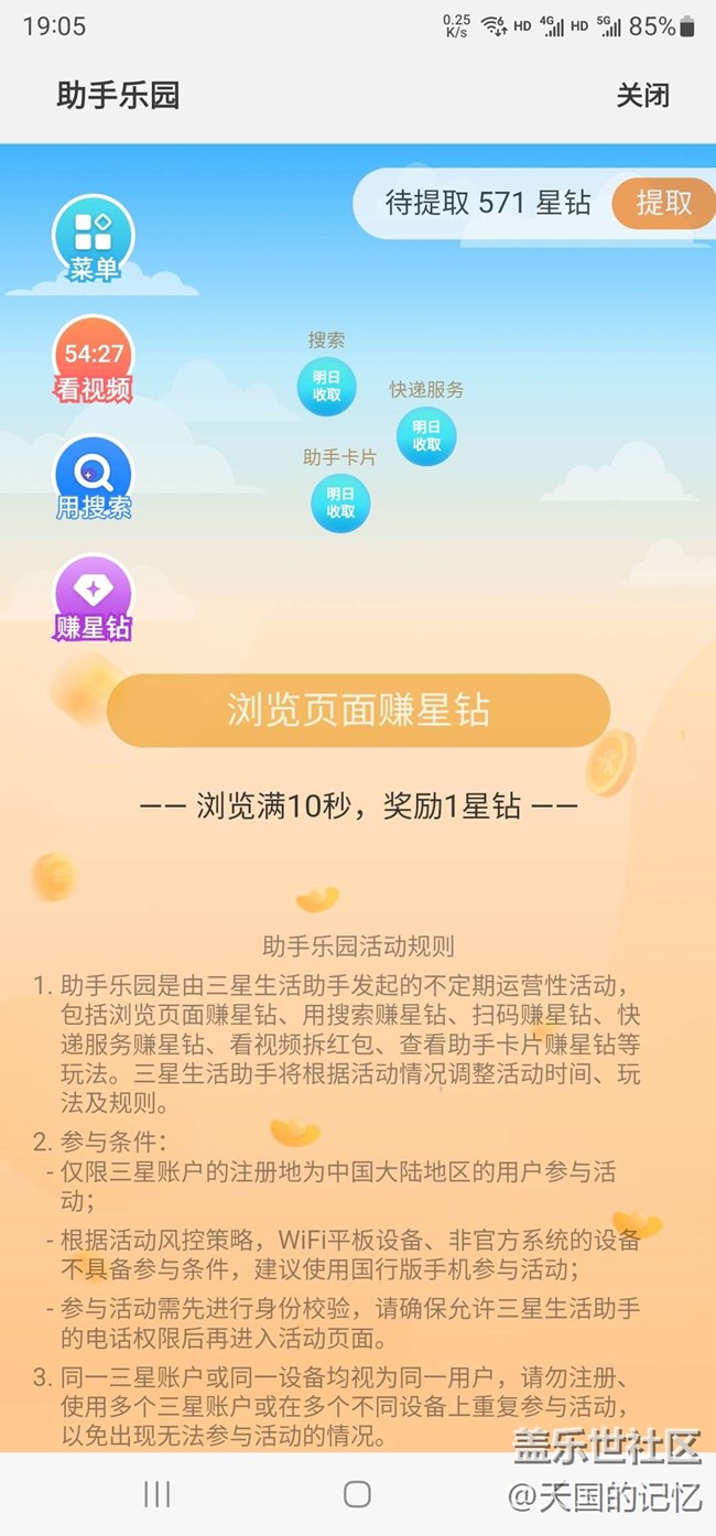 助手樂園里為什么沒有瀏覽頁面賺星鉆的任務了 圖片