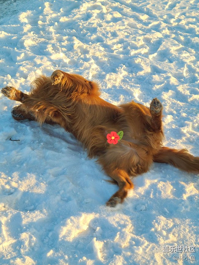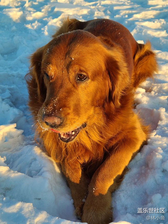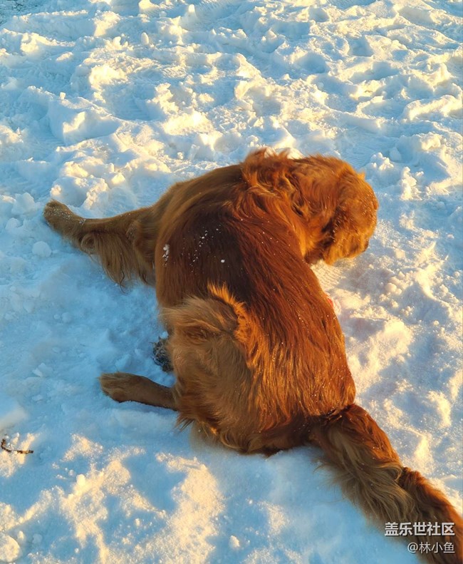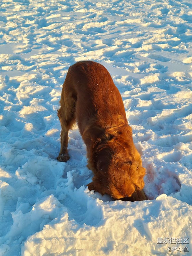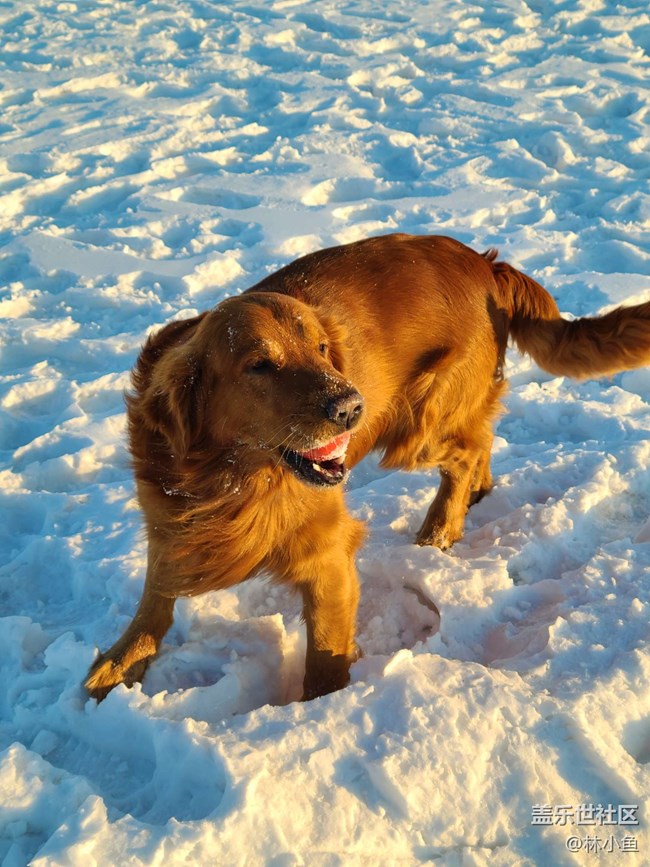 【冰封的世界】+玩雪的金毛 圖片