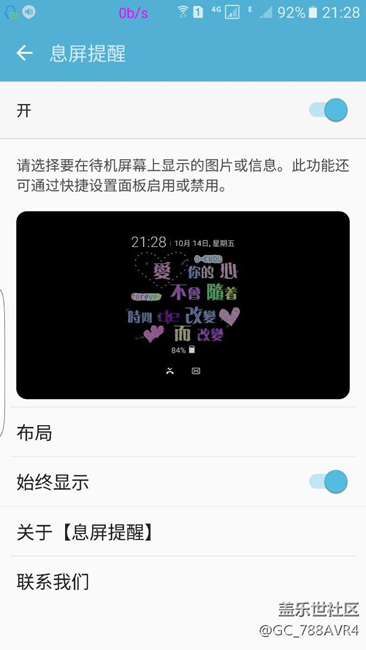 更新后熄屏提醒,在熄屏后只顯示一會(huì)時(shí)間,讓后就黑屏了,我設(shè)置的是始終提醒的,求解答