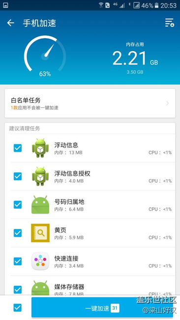 各位高人,我估計有手機運行內(nèi)存強迫癥,就是有事沒事愛清除后臺程序,所以,以前的手機都是root 后用的,最愛用的是LBE。自從買了A9100 后,感覺刷機太麻煩,就一直用原裝系統(tǒng),而且當時看9100 的參數(shù)是4G運存,心想最少有3G以上的運存可以用,沒想到手機平時最多剩2G,基本在1.5--1.8之間,當時感覺挺失望的(我以前的手機都是3G運存,刷機后能保持在2G左右)。通過使用我才發(fā)現(xiàn),A9100 的自啟系統(tǒng)軟件后臺運行太多了(LBE顯示有30多個后臺程序),怪不得手機內(nèi)存少,看來都是后臺自啟軟件惹的禍,而且,手機裝的糯米,UC,貼吧,百度音樂等等app 還能自己更新下載(多虧是在wifi下),我干著急找不到關(guān)自動更新的地方。就在我郁悶至極,社區(qū)高人整出來一個“阻止自啟”的軟件,可惜由于什么框架等問題,我裝不上,現(xiàn)在求助各位高人給解決一下自啟問題,謝謝大家。