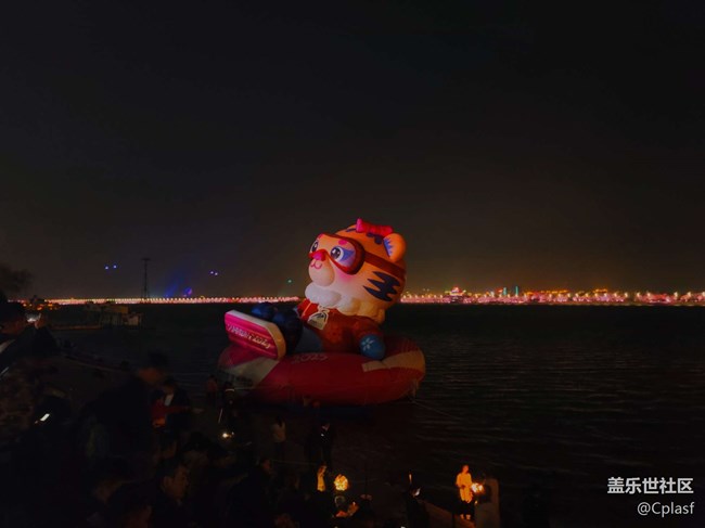 大家走在夜晚的中央大街上探討并嘗試該位小伙伴的機器